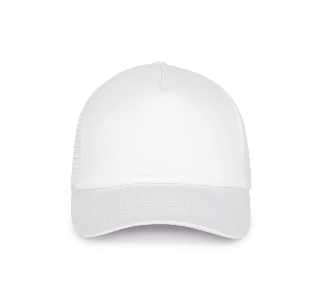 100% polyester. 5 panelen met een eenvoudig te bedrukken voorkant. Verstelbare plastic sluiting.